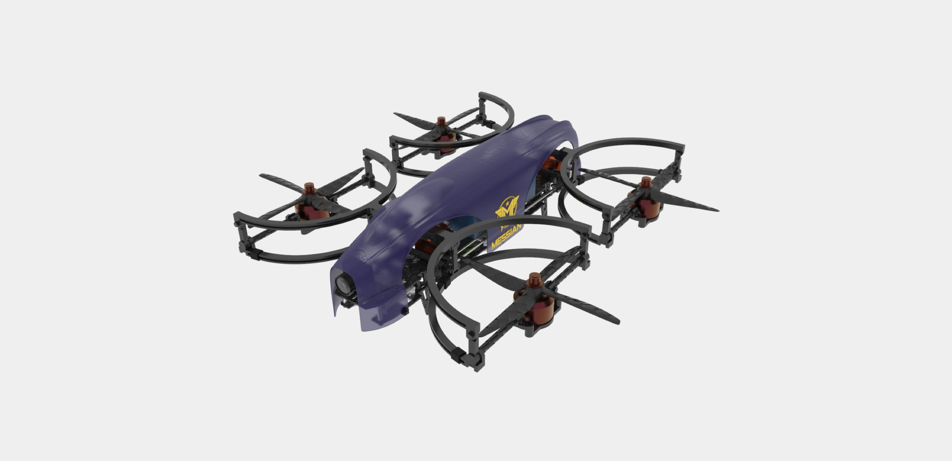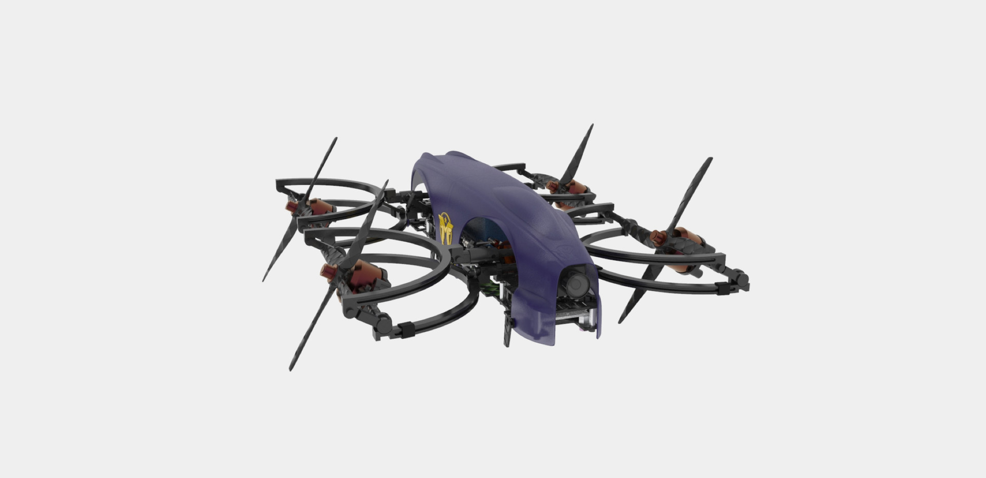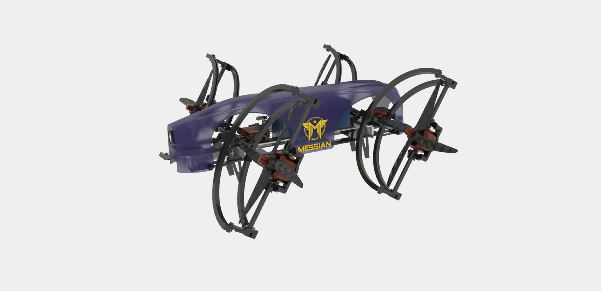 An aircraft consisting of a frame, 4 propellers mounted on a gimbal, 2 servomotors and steering linkages By adjusting the angle of the gimbal using two servomotors, the roll and pitch angle of the propeller can be uniformly controlled from the frame, and